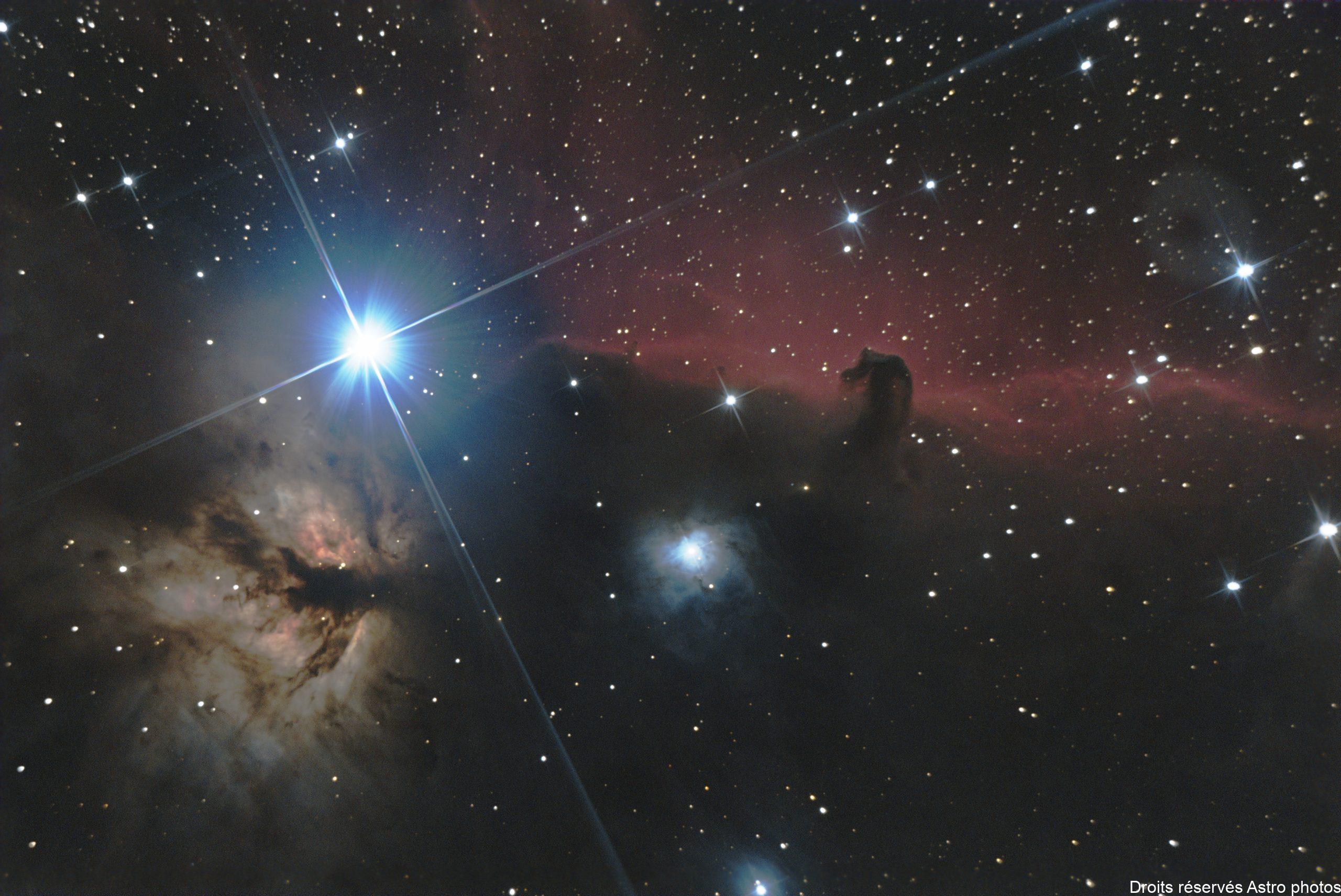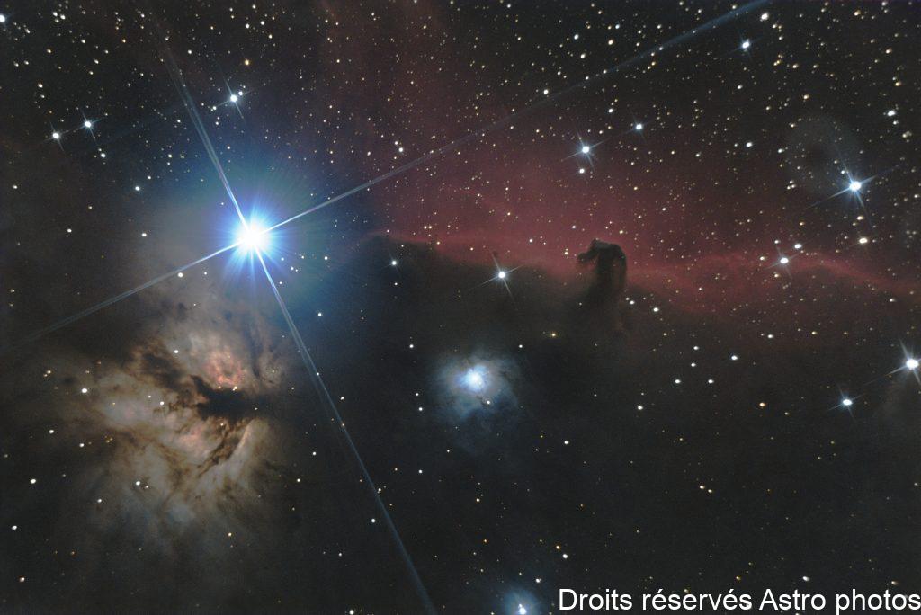 M42 : la grande nébuleuse d’Orion IC 434 : la tête de cheval, nébuleuse de la constellation d’Orion. L’étoile brillante est Alnitak, la première étoile de la ceinture d’Orion. En dessous est située une pépinière d’étoiles